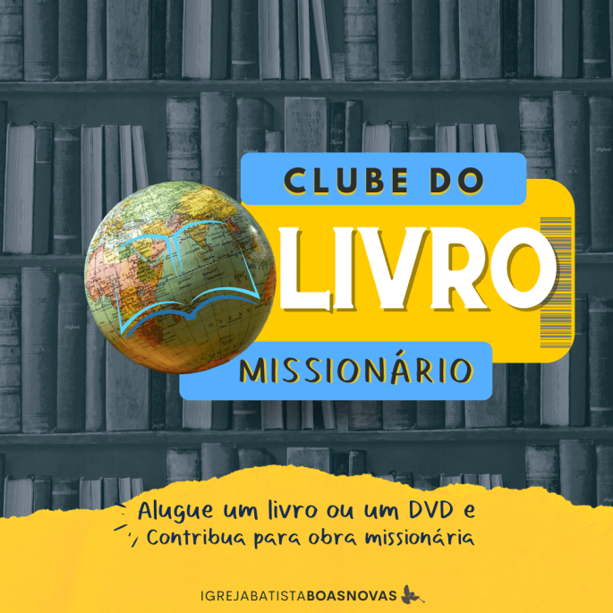 O Projeto CLUBE DO LIVRO MISSIONÁRIO fica no salão anexo da igreja. Alugue um livro e contribua para obra missionária.