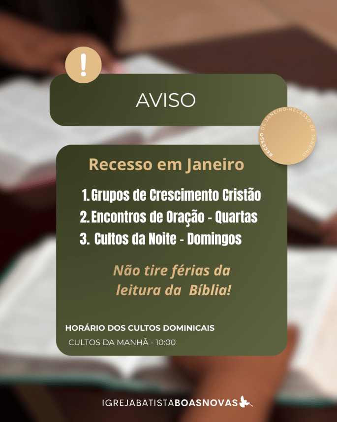 Todas as Quartas temos Reunião de Oração, às 19:00 em Boas Novas!